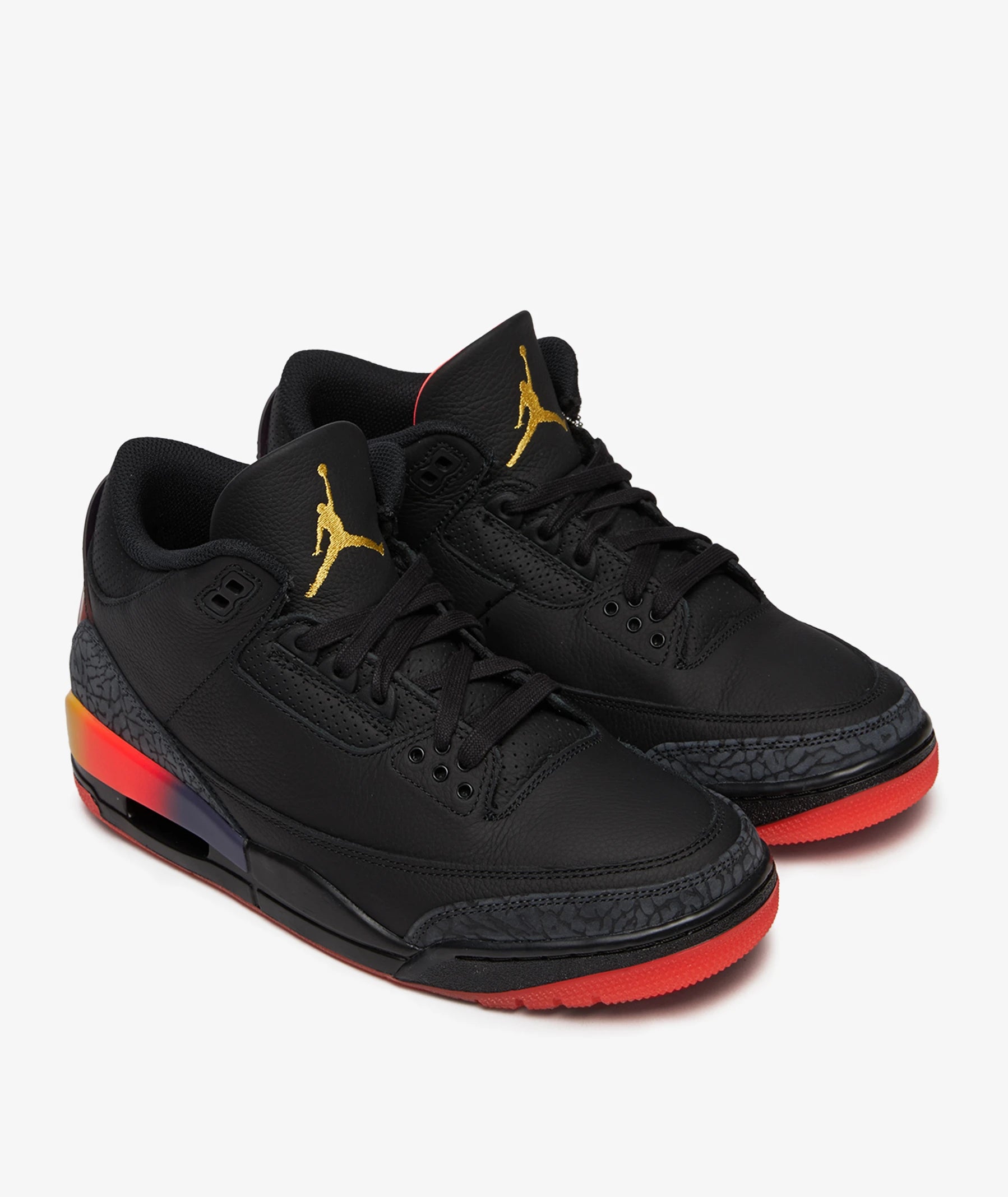 Descubre las Jordan 3 Retro J Balvin Rio, una combinación perfecta entre la clásica silueta de Jordan y el estilo vibrante del ícono colombiano J Balvin. Con una parte superior de cuero negro premium y detalles multicolores llenos de energía, estas zapatillas son ideales para destacar con un look único y atrevido.